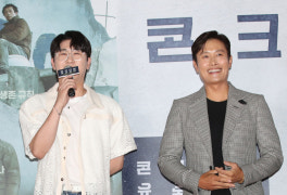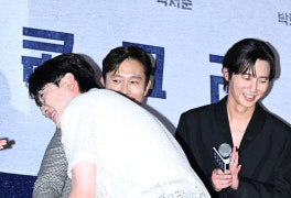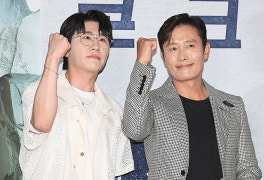 - 가수 영탁(왼쪽)이 8일 서울 송파구 롯데시네마 월드타워에서 열린 영화 '콘크리트 유토피아' VIP 시사회에서 극 중 영탁 역을 연기한 이병헌을 응원하고 있다. '콘크리트 유토피아'는 대지진으로 폐허가 되어 버린 서울...