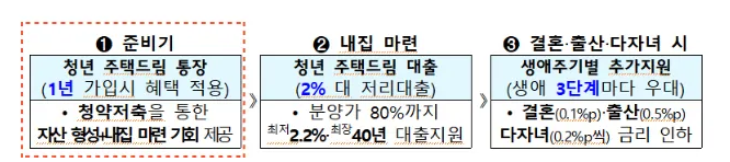 준비기는 청년 주택드림 청약통장으로 내 집마련 기회를 만드는 과정이고 내 집 마련 단계에서는 청년 주택드림 대출로 내 집마련을 위한 대출지원을 하게 됩니다.